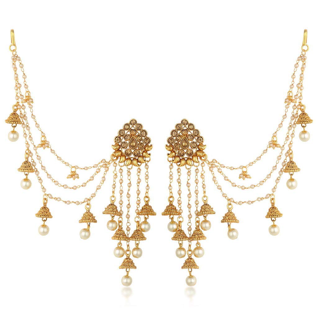 Gold plated wedding jewellery bahubali inspired long chain jhumki earrings for women. This is trendy, classy and stylish.