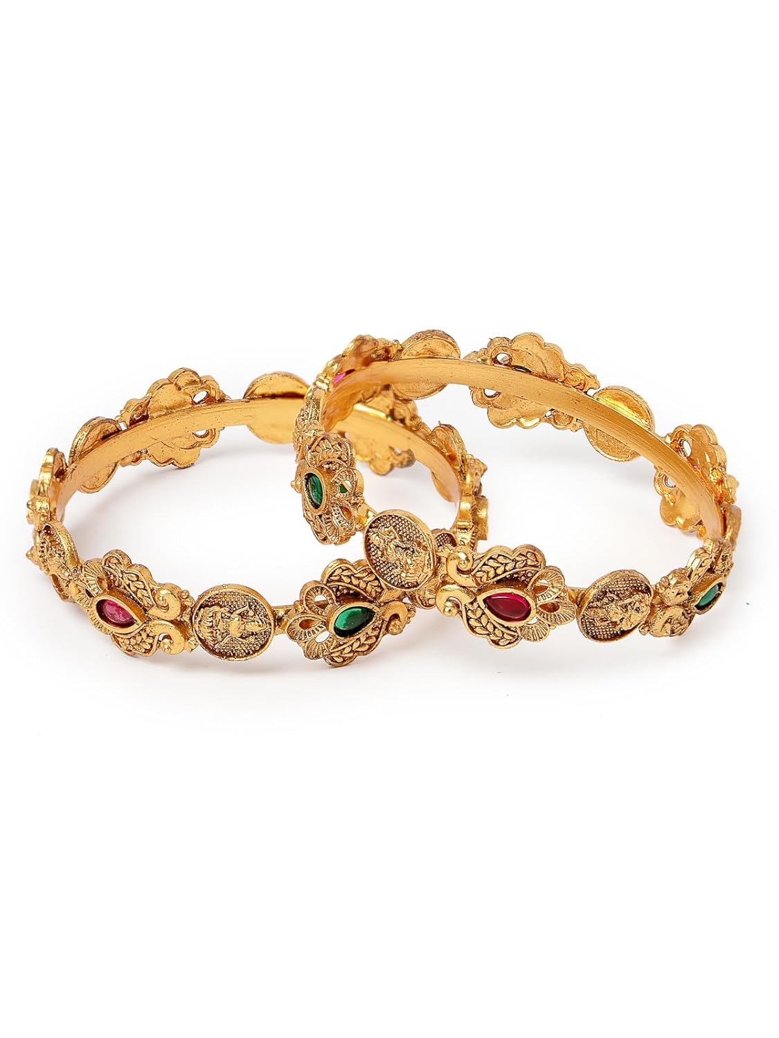 Sukkhi Traditional Gold Plated Red And Green Kada Bracelet Bangle Jewellery Set for Women & Girls