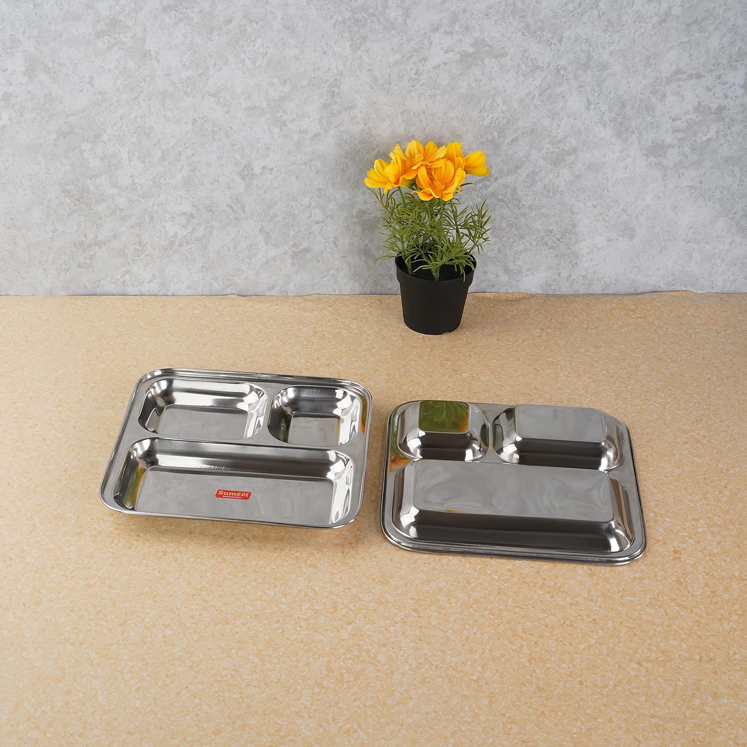 When not in used each plate can be stacked inside one another consuming lesser storage space. These plates can be used for Serving various types of Food items at the Dining Table. This Stainless-steel plate with compartments can also be used in mess, halls, parties, pantry, canteen, schools, colleges, hotels, restaurant and other services. These plates are very easy to clean and maintain