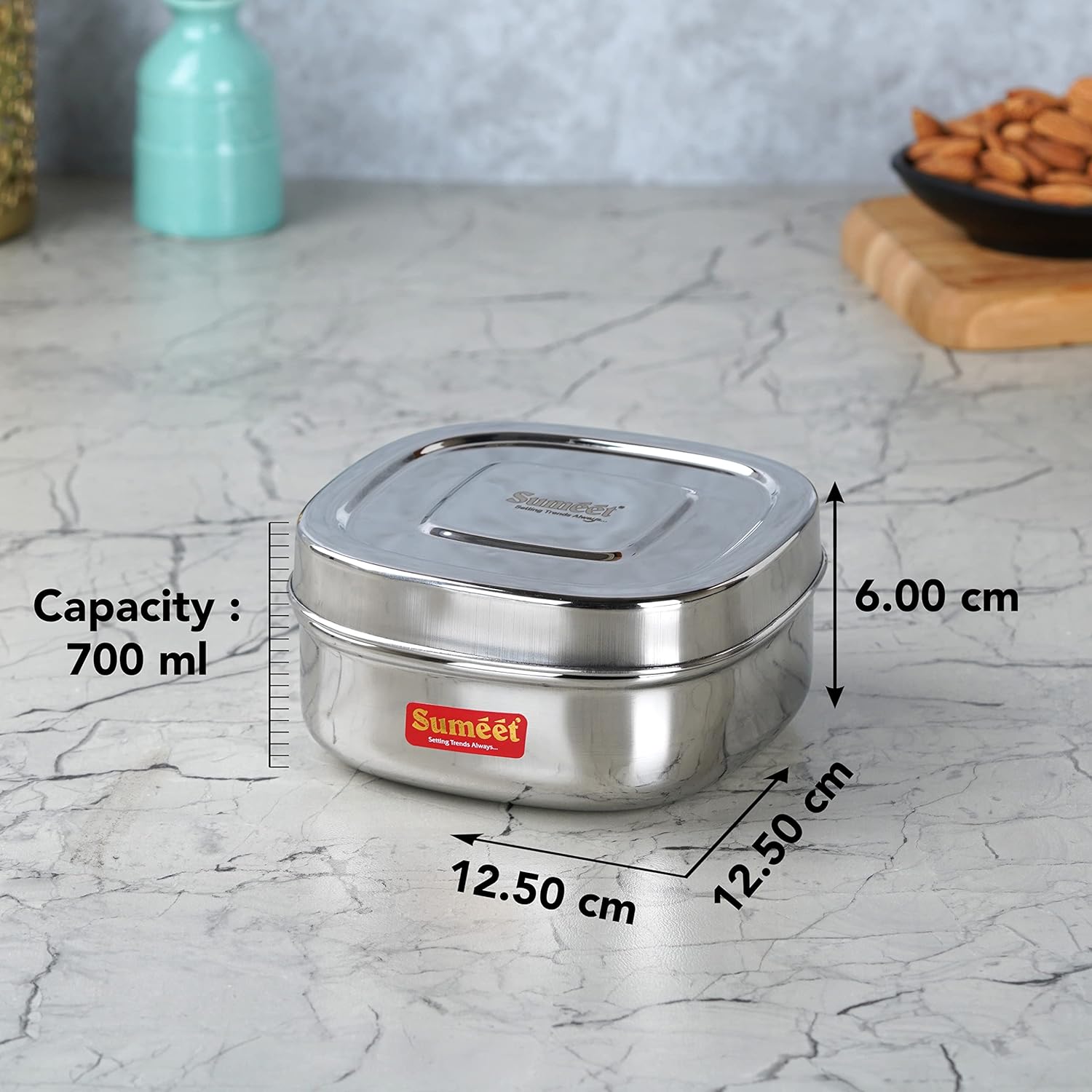 Sumeet presents Flat Square Shape storage containers made from the finest food grade stainless-steel material which ensures strength, quality and durability.