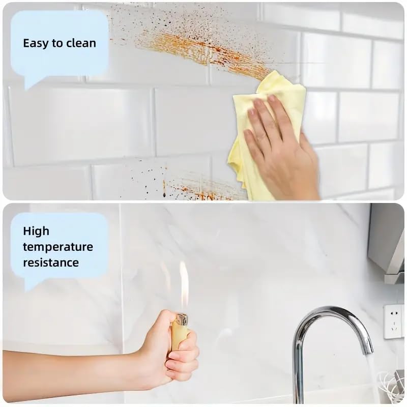 ⭐INSTALLATION – Self-adhesive Kitchen Backsplash Wallpaper Stickers is easy to install and remove without any residue left. Firstly, clean and dry the flat surface. Secondly, tear off the product protective film and spray some water on the film. Thirdly, Stick the film to the surface, squeeze the bubble until the bubble disappears