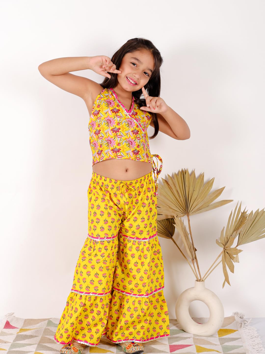 superminis Baby Girl’s Cotton Printed Short Kurti With Sharara Dress Clothing Set