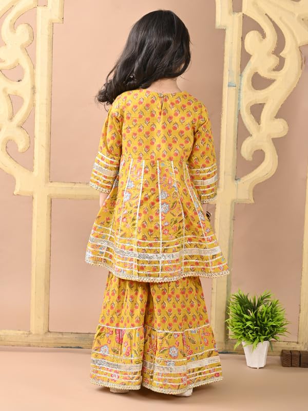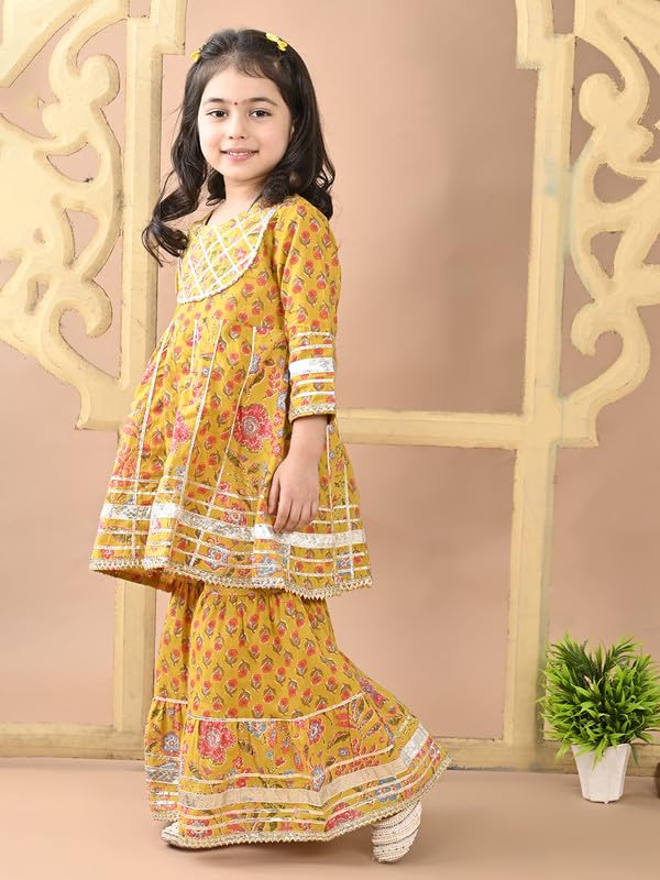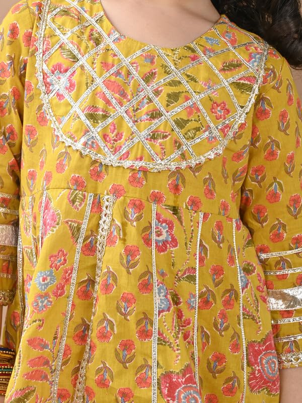 Featuring an elegant floral print enhanced with delicate gotta work, the kurti reflects a rich cultural aesthetic with a fresh, playful twist. The craftsmanship is designed to highlight traditional artistry while keeping it kid-friendly and vibrant.