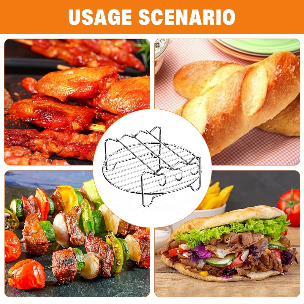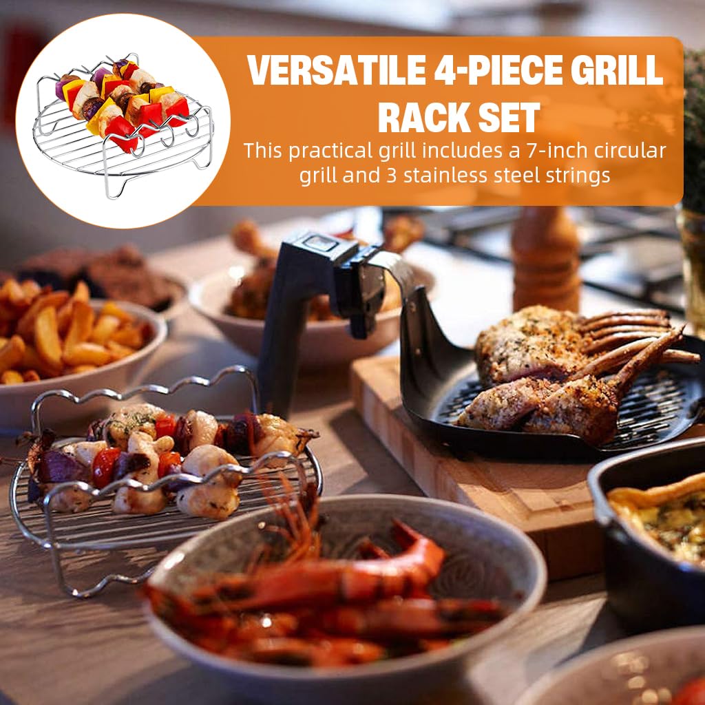 VERSATILE 4-PIECE GRILL RACK SET: This practical grill set includes a 7-inch round grill rack and 3 stainless steel skewers, offering a seamless grilling experience for meat, vegetables, and more. Designed to fit air fryers and ovens, it simplifies your cooking process, making every meal preparation enjoyable and hassle-free.