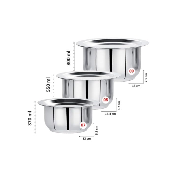 Swarni Stainless Steel Tope/Patila/Cookware Set with Stainless Steel Lid Induction Bottom Cookware Set (Set of 3Pcs with Lids, 500ml, 750ml, 1000ml)