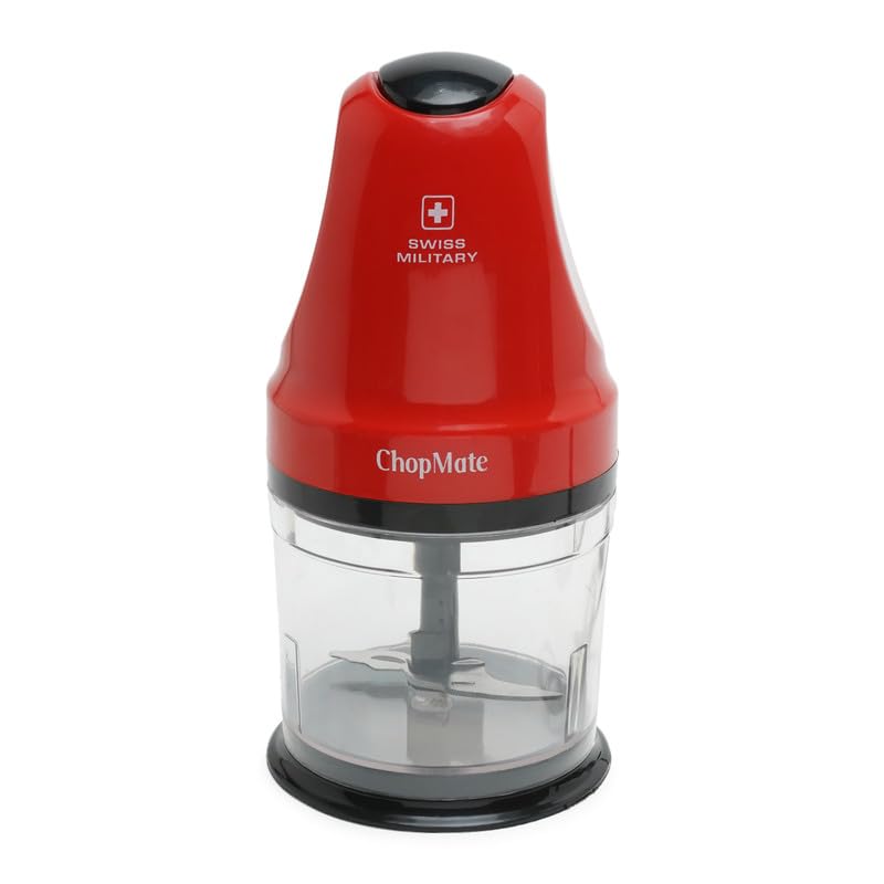 Swiss Military CHOPMATE Vegetable Chopper for Kitchen, Onion Chopper, Electric Chopper for Kitchen Use, Veggie Chopper, Food Processor for Kitchen, Stainless Steel Blades,250 Watts,1 Year Warranty,Red