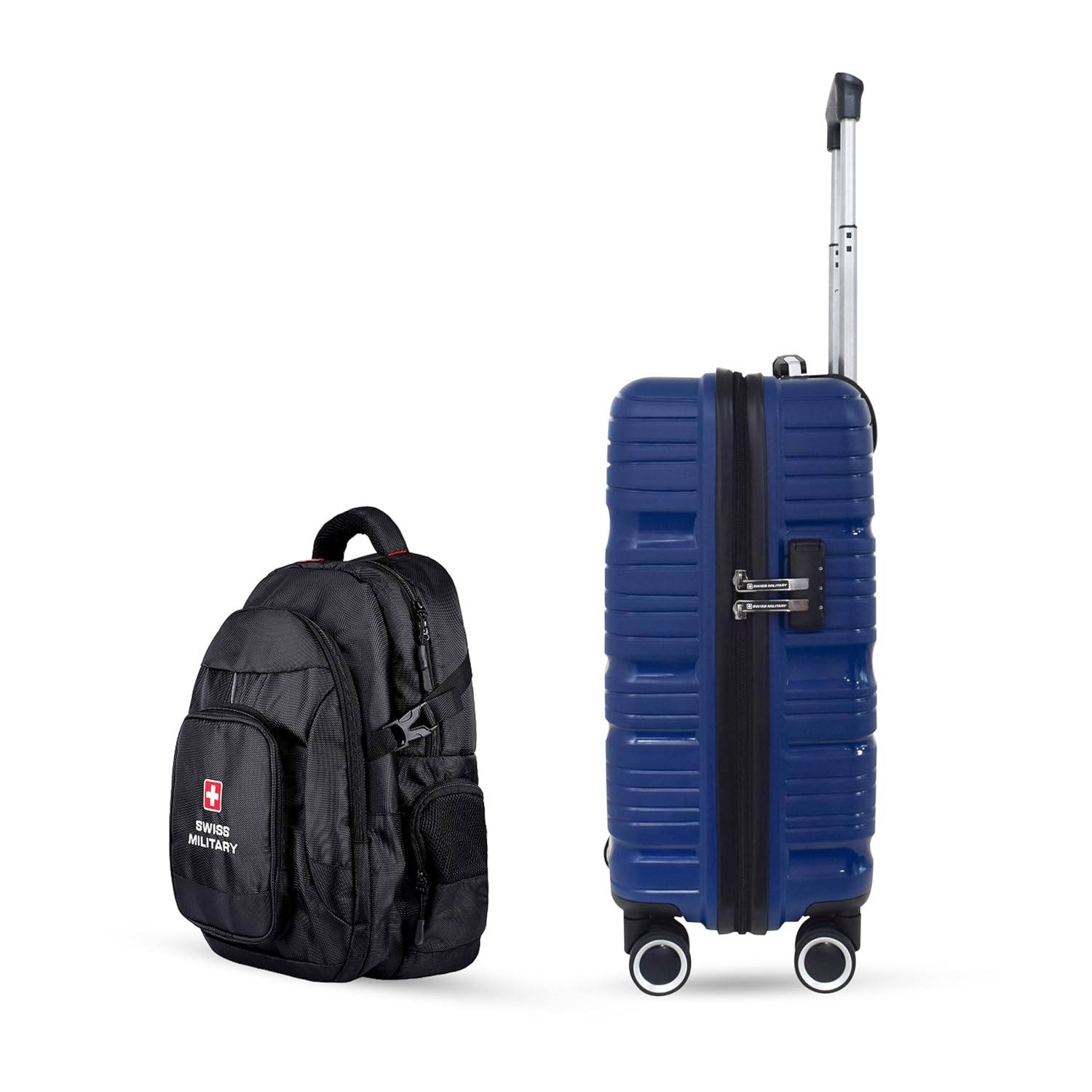 Swiss Military PP Swirl Textured Hard Top 20 Inch Luggage Trolley Bag, 360 Degree Rotatable 8 Wheels, 3 Dial Combination Lock, 41 Liters, HTL121 (Blue Luggage + Backpack)