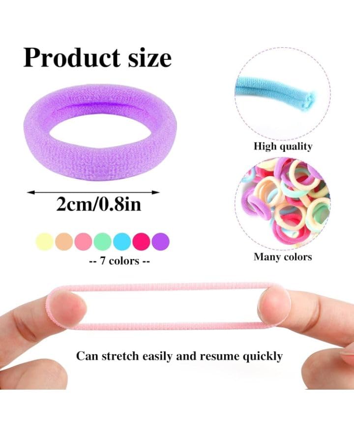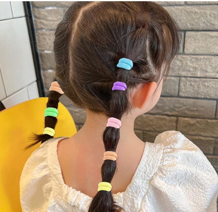 T Trendy Mart Hair Ties, 100 Pieces, Soft Cotton Mini Elastic Bands, Pastel Colours, Non-Slip Ponytail Holders for Girls and Kids
