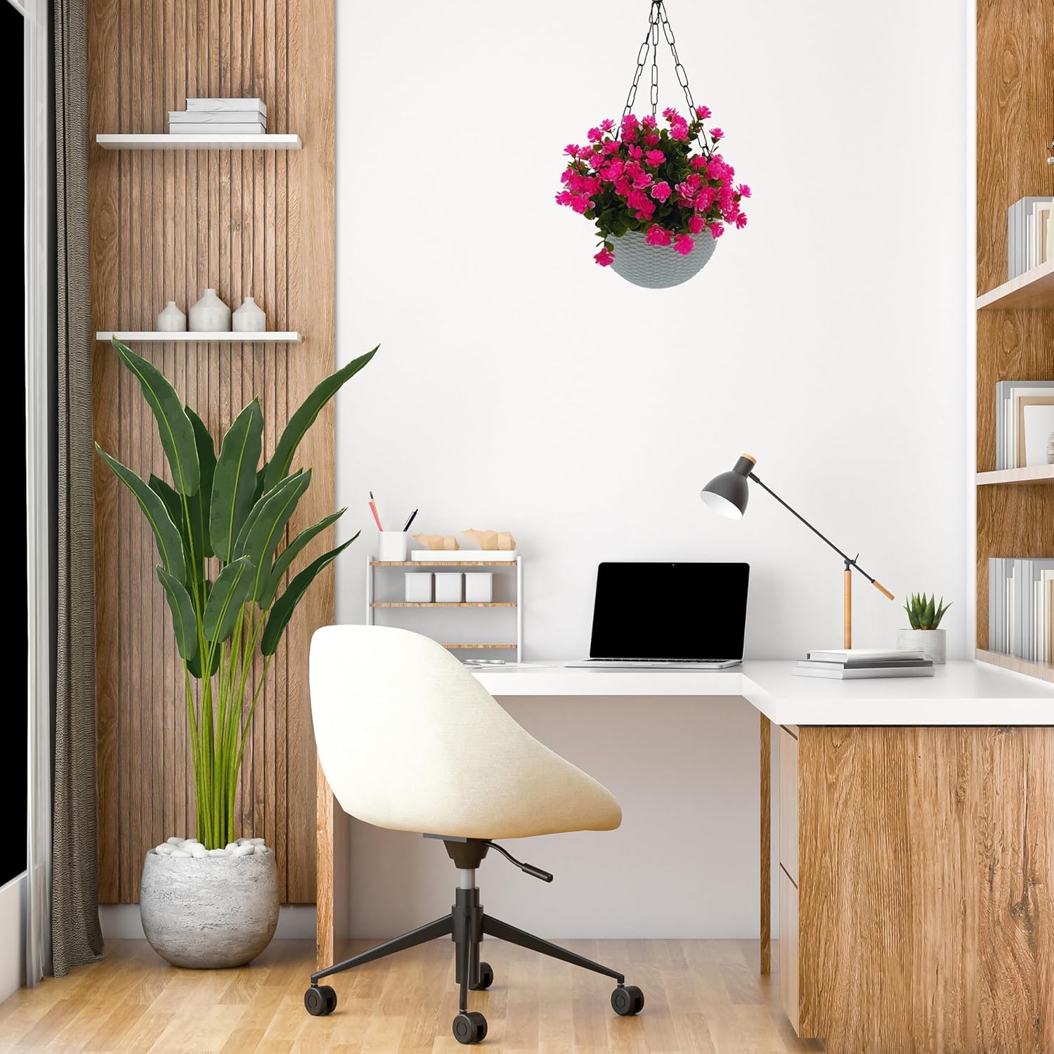 LOW MAINTENANCE: No need for watering, pruning, or sunlight – a hassle-free way to enhance your surroundings. Instantly transform your living spaces with these artificial hanging plants – no green thumb required.