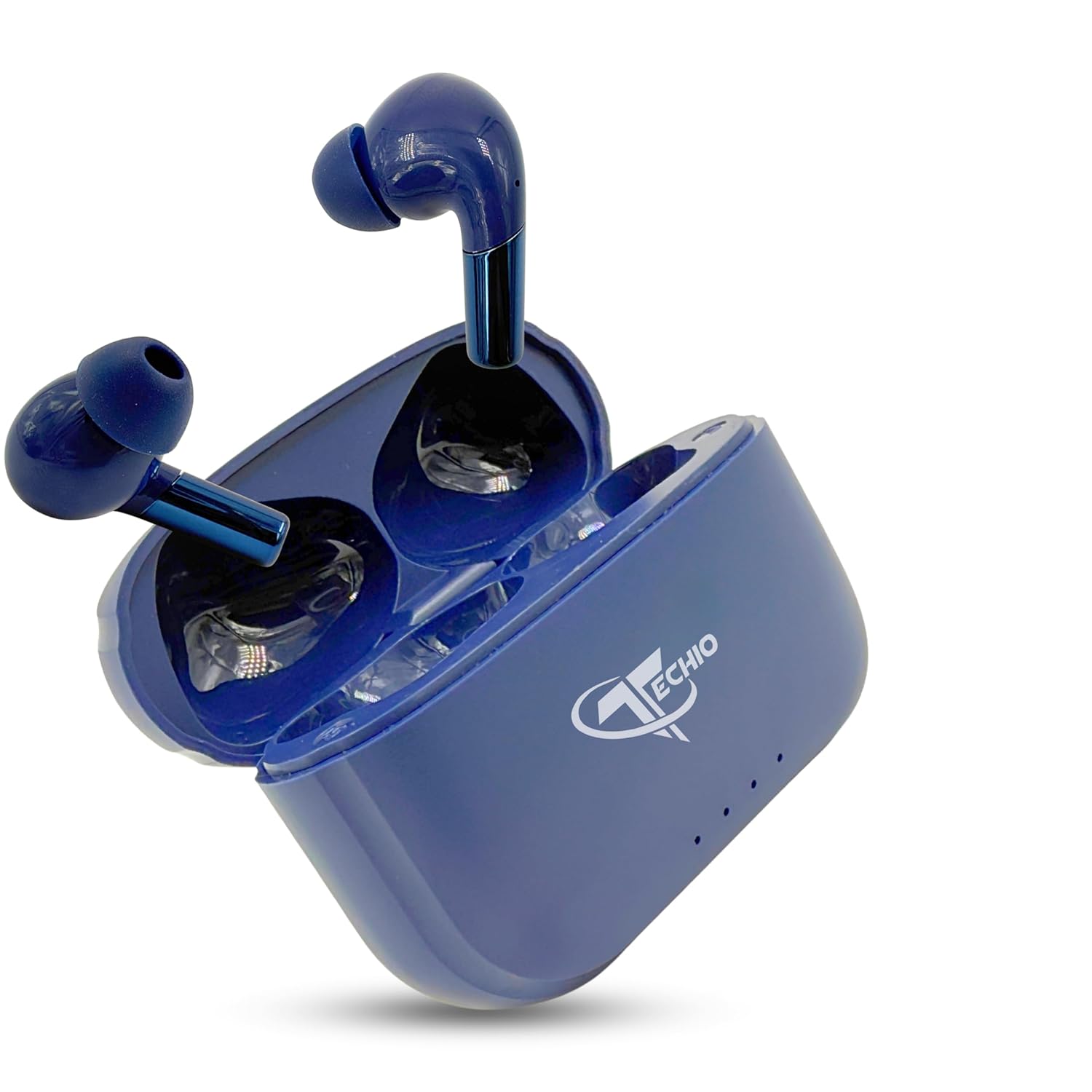 Techio earbuds Are you looking for a wireless earbud-type headset that delivers an impressive playback time? If your answer is yes, bring home the techio earbuds that comes with a carrying case. This carrying case also acts as portable charger that extends the playback time of these earbuds by up to 20 hours, i.e. 4 times its normal charging capacity. The normal battery capacity of each of these earbuds is 400 mAh and this delivers up to hours of playback time. These earbuds feature Bluetooth v5.3 technology that delivers a stable connection that lets your rock on without connectivity issues. The stereo calling feature of these earbuds allows you to enjoy calls via its built-in microphone and 13-mm drivers. These earbuds are powered up by the IWP Technology featured in them the moment you open the case. The presence of a Type-C charging port ensures you can easily charge it with any charger that has a compatible cable.