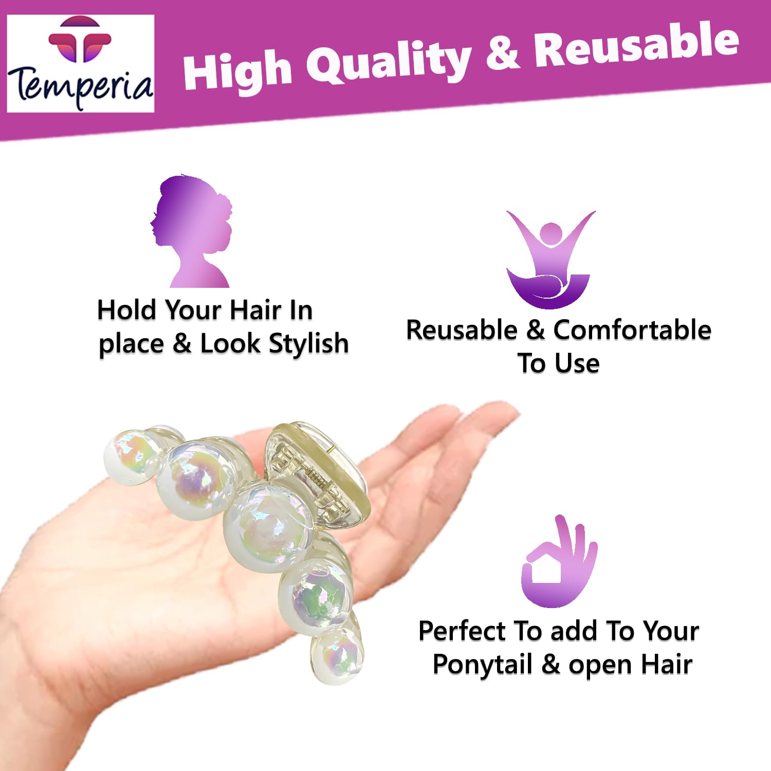 TEMPERIA (2 pcs) Pearl Hair Clips for Women & Girls – Korean Clutcher Clutches Claw Clip Accessories – Sparkling Pearl Design, Stylish, Fashional (DN09)