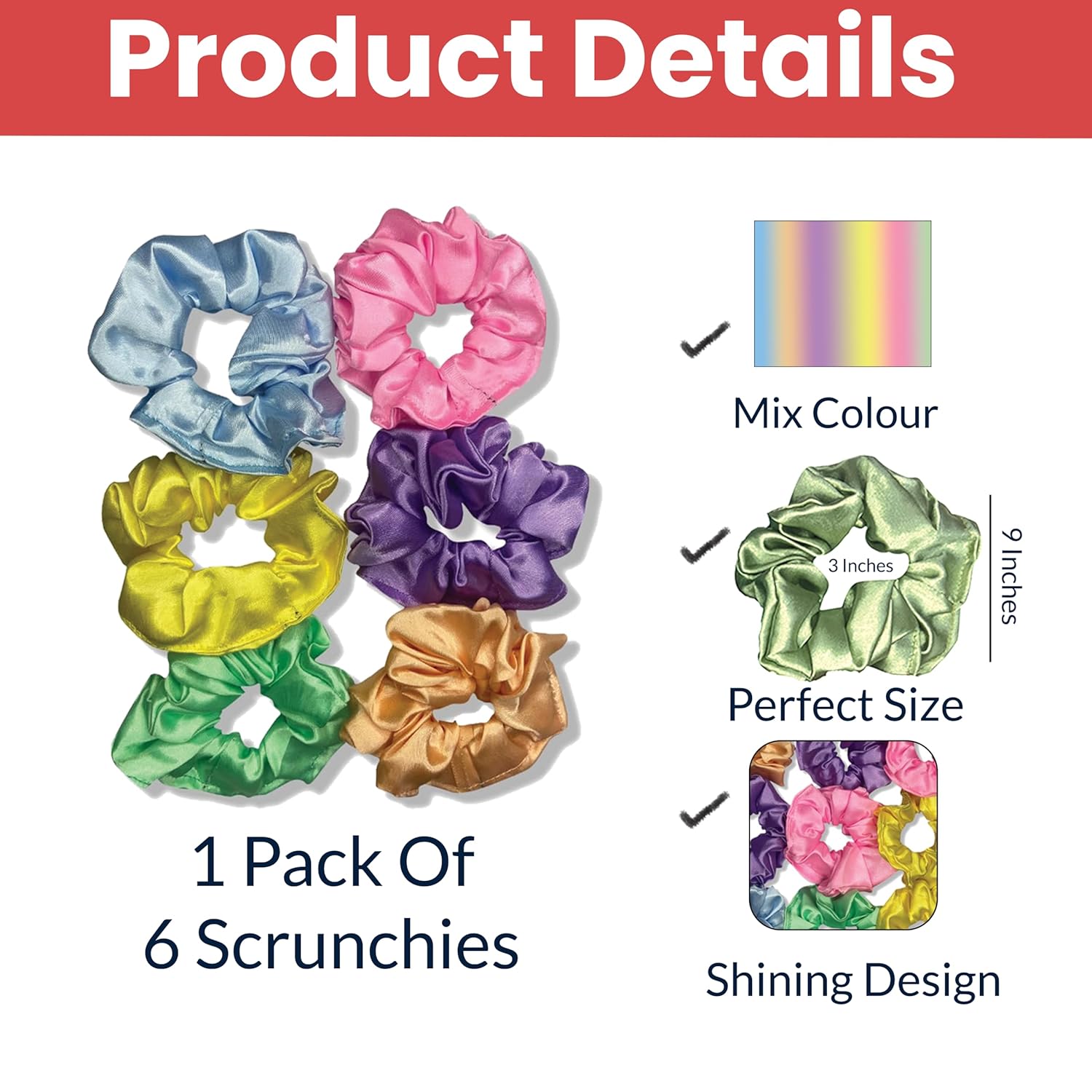 👩🏻 PACKAGE INCLUDES: Premium Hair Scrunchies. It is has high quality Elastic Rubber Band which can be scretched/folded to fit your size