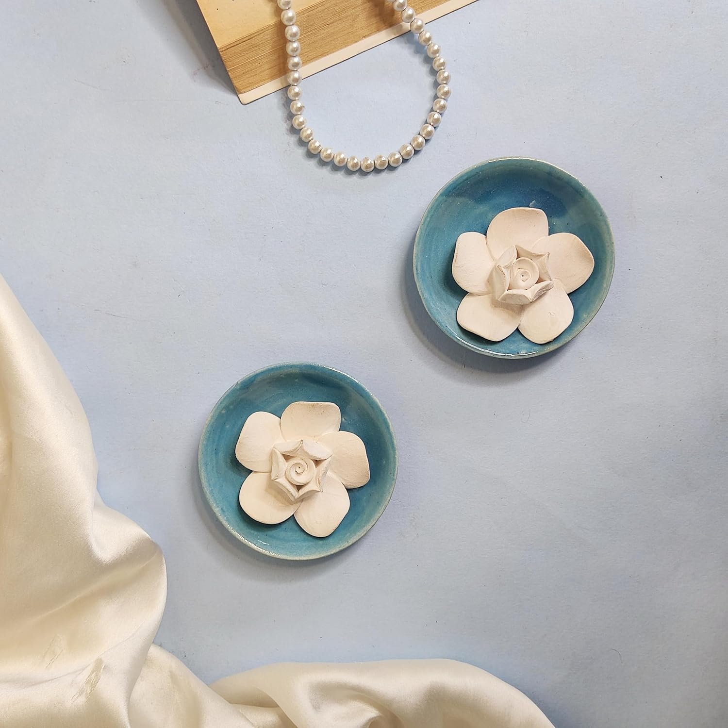 The Bling Stores No Flame Handmade Ceramic Flower Aromatherapy Diffusers for Home, Mandir, Office, Desk Decoratives, Car, Room, Bathroom, Closet, Wardrobes (Light Blue)