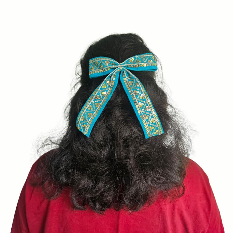 Complete your festive look with The Cool GrandMom’s Traditional Colourful Bow Hair Clip – a stylish and elegant accessory specially designed to enhance your ethnic outfits for Navratri, weddings, and cultural events. Made with high-quality traditional fabric and embellished with sequins and embroidery, this hair bow adds a charming ethnic touch to your hairstyle. Whether you’re going for a half-updo, bun, or simply pinning your hair back, this bow clip instantly elevates your look with its vibrant color and cultural flair. Designed for comfort and ease of use, the attached clip provides a secure hold all day long, letting you dance, twirl, and celebrate worry-free. This accessory is ideal for women and girls who want to bring a touch of traditional glamor to their festive attire — without compromising on modern style.