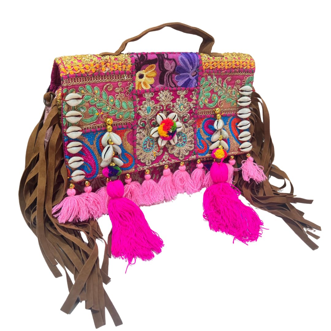 The House of RajPadmini Handmade Banjara Crossbody Bag | Embroidered with Tassels