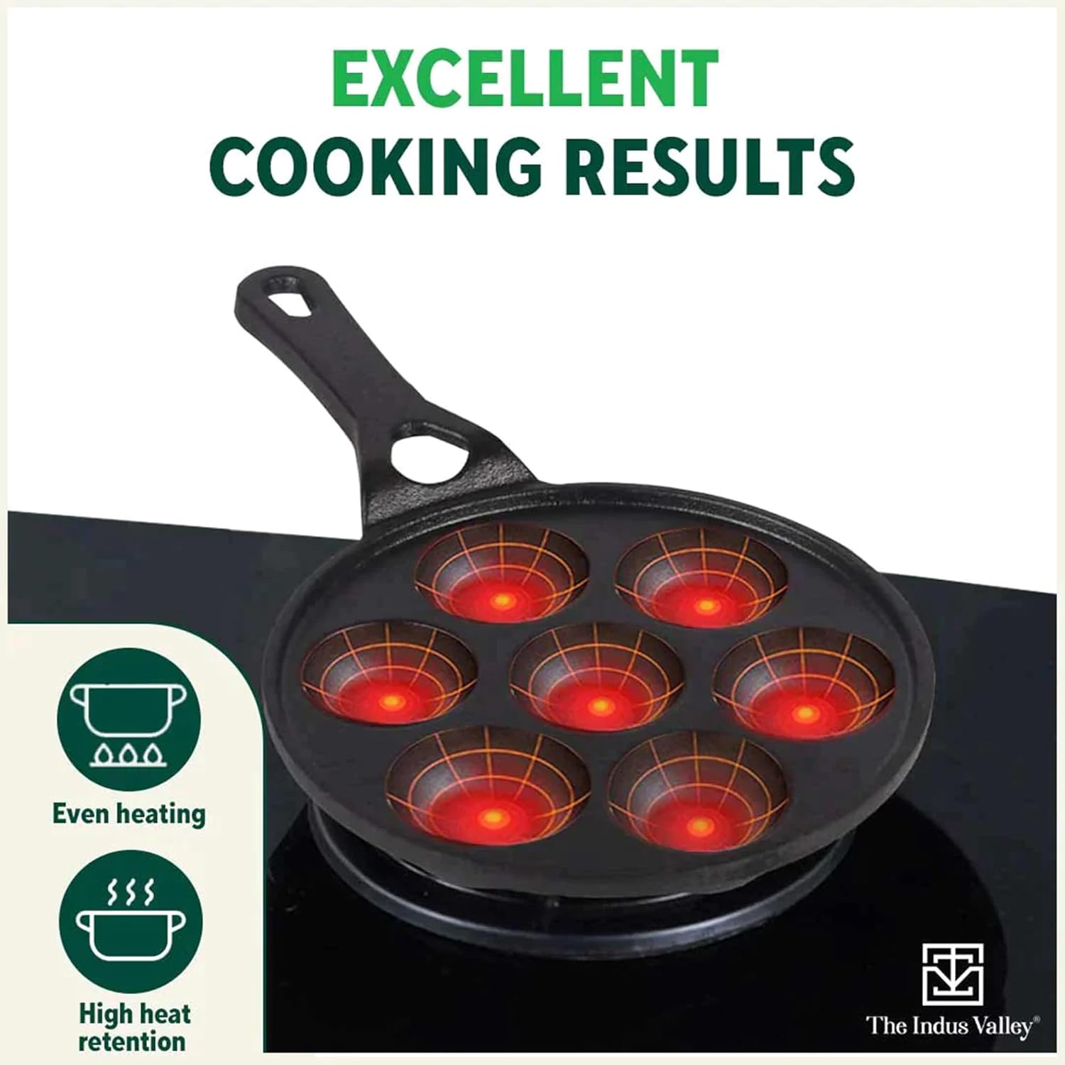 The Indus Valley Pre-Seasoned Cast Iron Square Paniyaram Pan | Induction Friendly | Nonstick Appe/Paddu Pan, 100% Pure (Super Smooth Long Handle+Silicon, 7Pit, 21Cm/8.3 Inch)