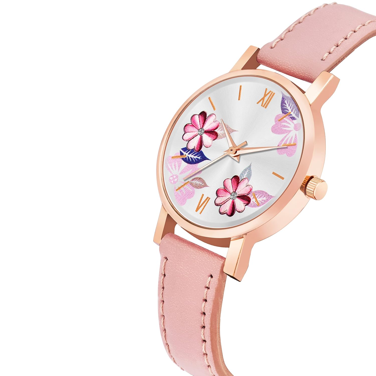 The Shopoholic Analog 6 Different Color Flowered Dial Watch for Womens and Girls Single and Combo Watches for Women and Girl Pack of 2 and Pack of 3