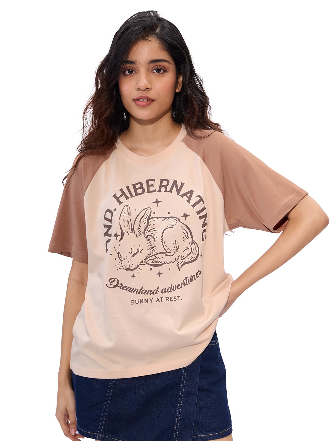 The Souled Store DND Women and Girls Short Sleeves Round Neck Brown Graphic Printed Cotton Relaxed Fit T-Shirts