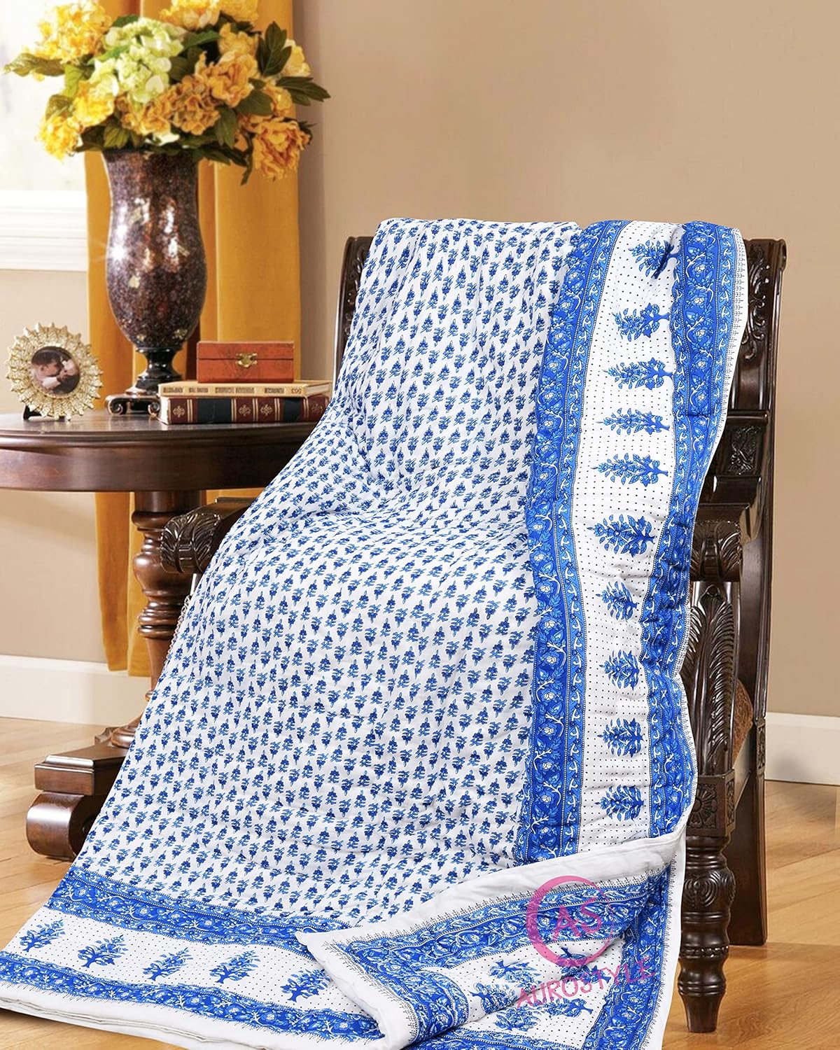 THROWS HOME DECOR 400 TC Double Bed Jaipuri Razai Organic Pure Cotton Jaipuri rajai Ac Quilt for Winter and Summer Soft Light Weight Rajasthani Traditional Cotton Comforter 85 x 100 inch Blue
