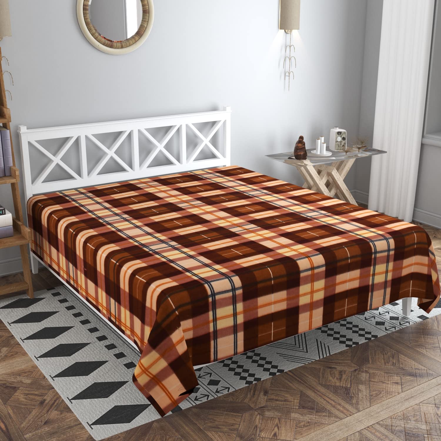 TIB The Intellect Bazaar Microfiber AC Blanket Comforter for Winter/Quilt/Duvets for King Size Double Bed | Soft Light-Weight | 90X90 Inches, Brown Check