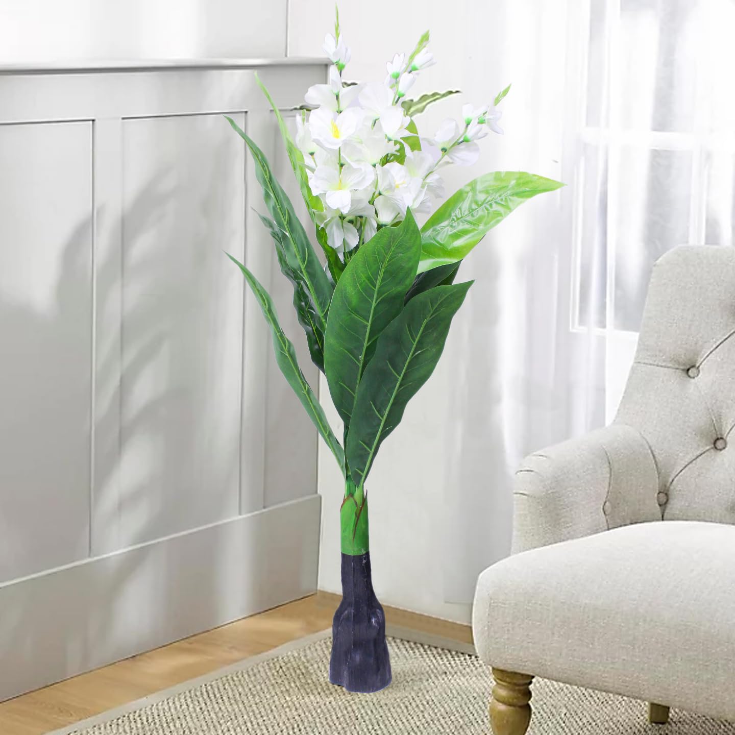 Package Contains:- Set of 1 Artificial White Flower Plant Large Size 3.6 Feet | Material :- Plastic | Color:- White | Size :- 43.2 Inch (3.6ft) (Big Size)