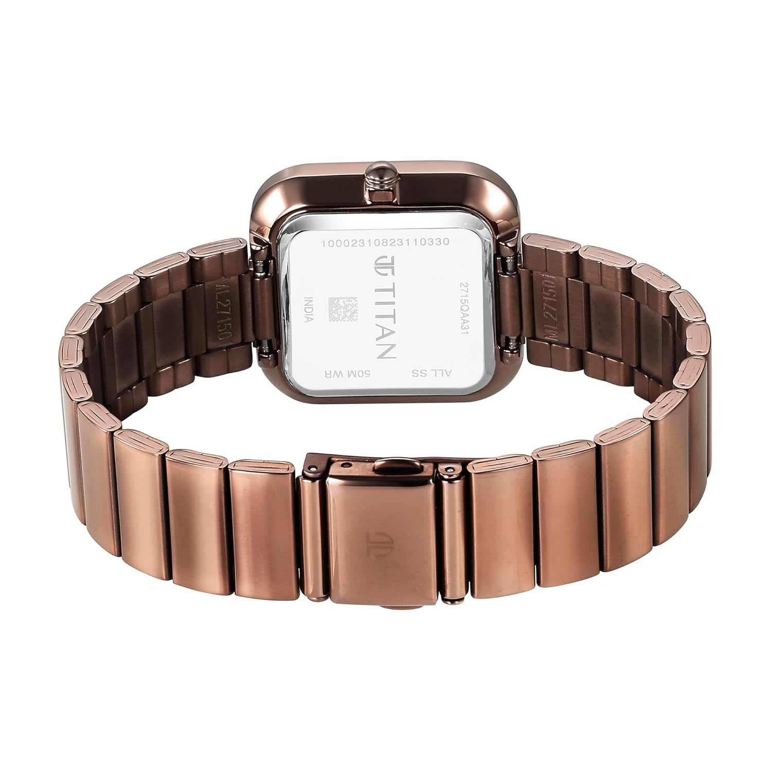 Make a bold style statement with the Titan Purple Stackables watch, featuring a striking square black dial paired with a rich metallic brown stainless steel strap. Designed for the modern woman who appreciates powerful elegance, this timepiece exudes confidence and finesse. The complementary rose gold feather bangle adds a layered charm, giving you the option to wear it solo or as a stacked set. A seamless fusion of contemporary design and timeless grace, this is the perfect accessory for both everyday sophistication and special occasions.