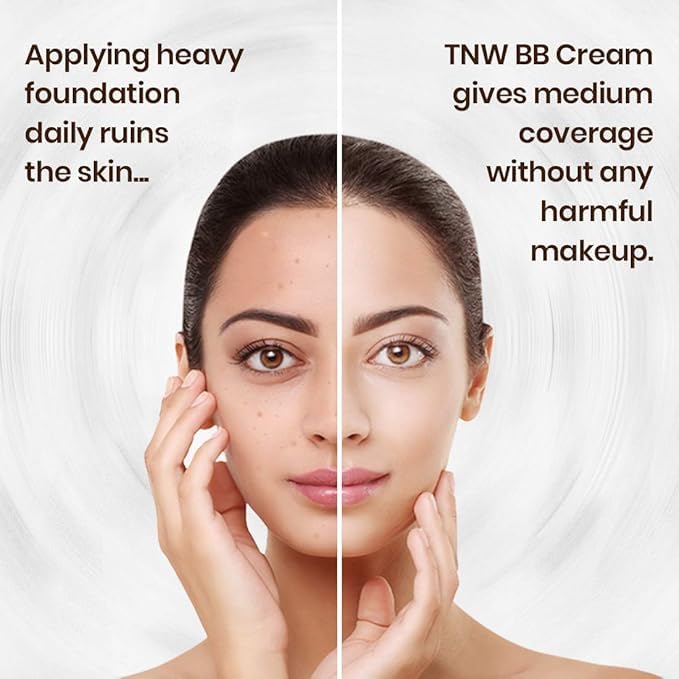 Evens out the skin & gives Matte Finish: TNW BB Cream is an all-natural substitute of everyday heavy foundations, as it gives medium coverage without making your face look cakey. It evens out the skin tone and gives an oil-free matte finish.