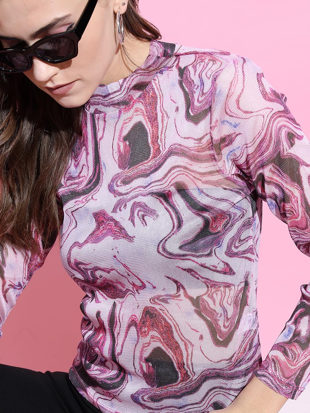 Tokyo Talkies Abstract Print High Neckline Top | Full Sleeves | Bold & Stylish | Perfect For Work & Chic Outings | Tops For Woman | Women Tops