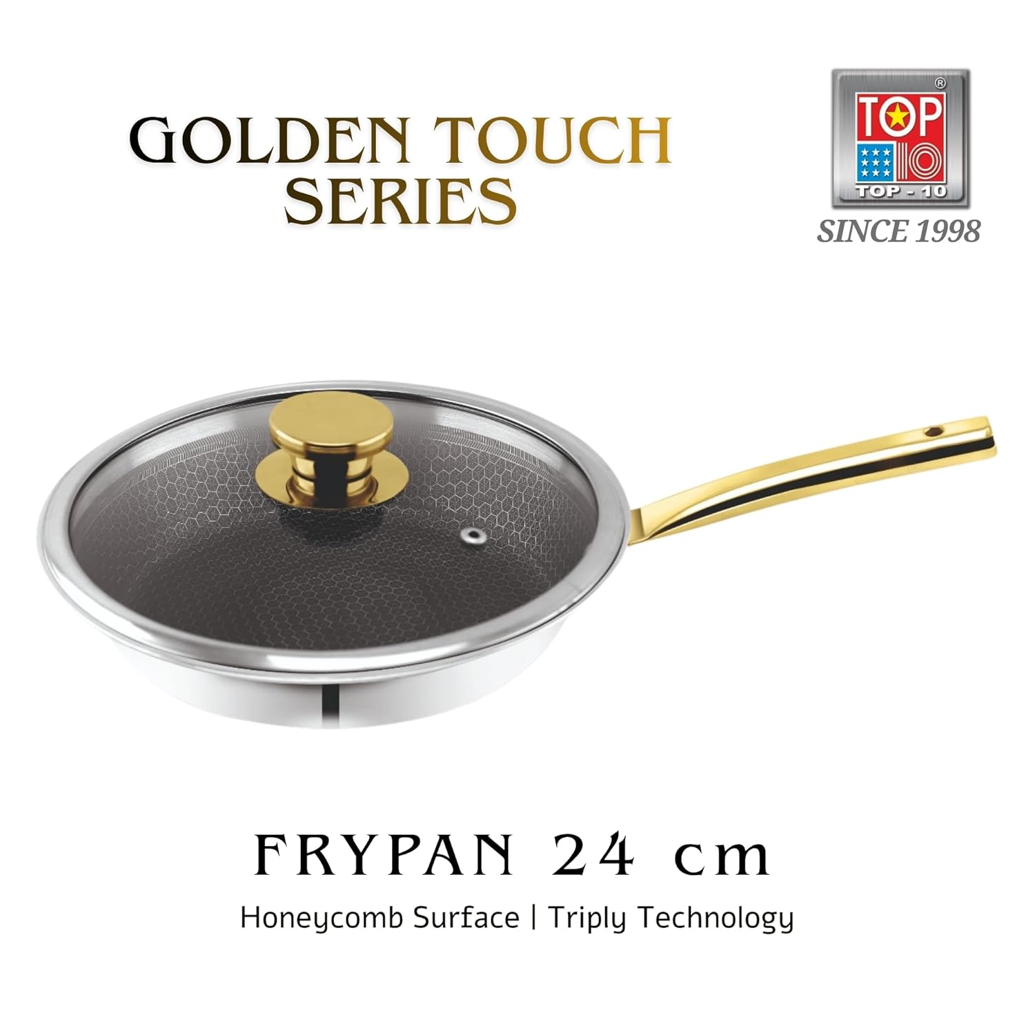 TOP-10 Golden Touch Honeycomb Triply Fry Pan 24 cm with Glass Lid | 1.8 Litre | 2.5 mm Thick | Induction Compatible | 2 Years Warranty