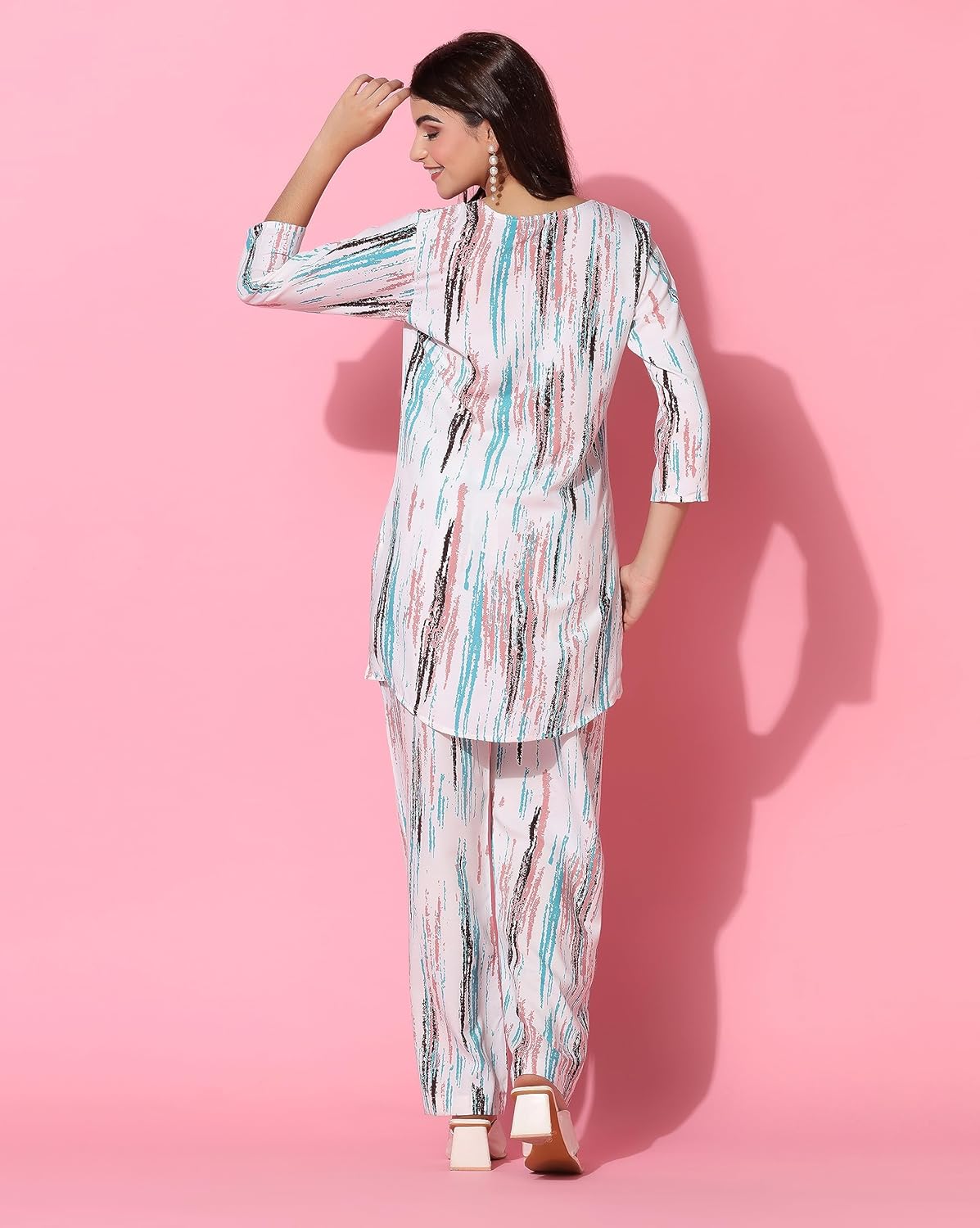 TOPLOT co-ord kurta set featuring a printed straight kurta with palazzo pants is a stylish and comfortable outfit choice for various occasions. Its combination of traditional and modern design elements, along with the choice of fabric and embellishments, makes it a versatile addition to any woman’s wardrobe. There’s a wide range of options available in terms of colors, prints, and designs, so you can find a set that suits your taste and makes you feel comfortable and confident. Wash Care: Machine wash. Get ready with your casual look when you put on this outfit.