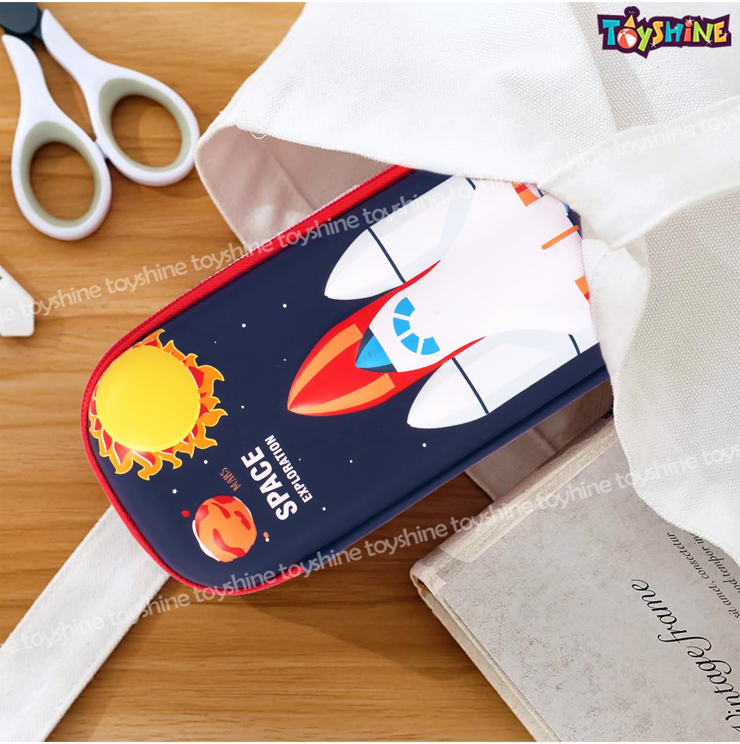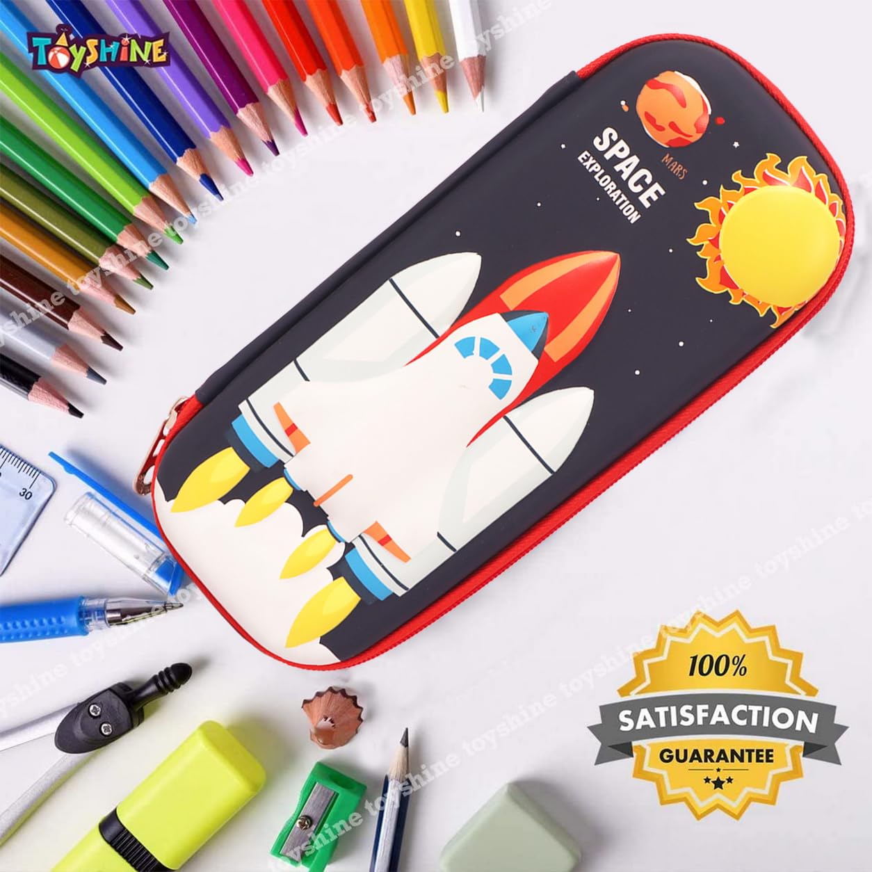 Toyshine Space Exploration Hardtop Pencil Case with Compartments – Kids Large Capacity School Supply Organizer Students Stationery Box (D-Lite)