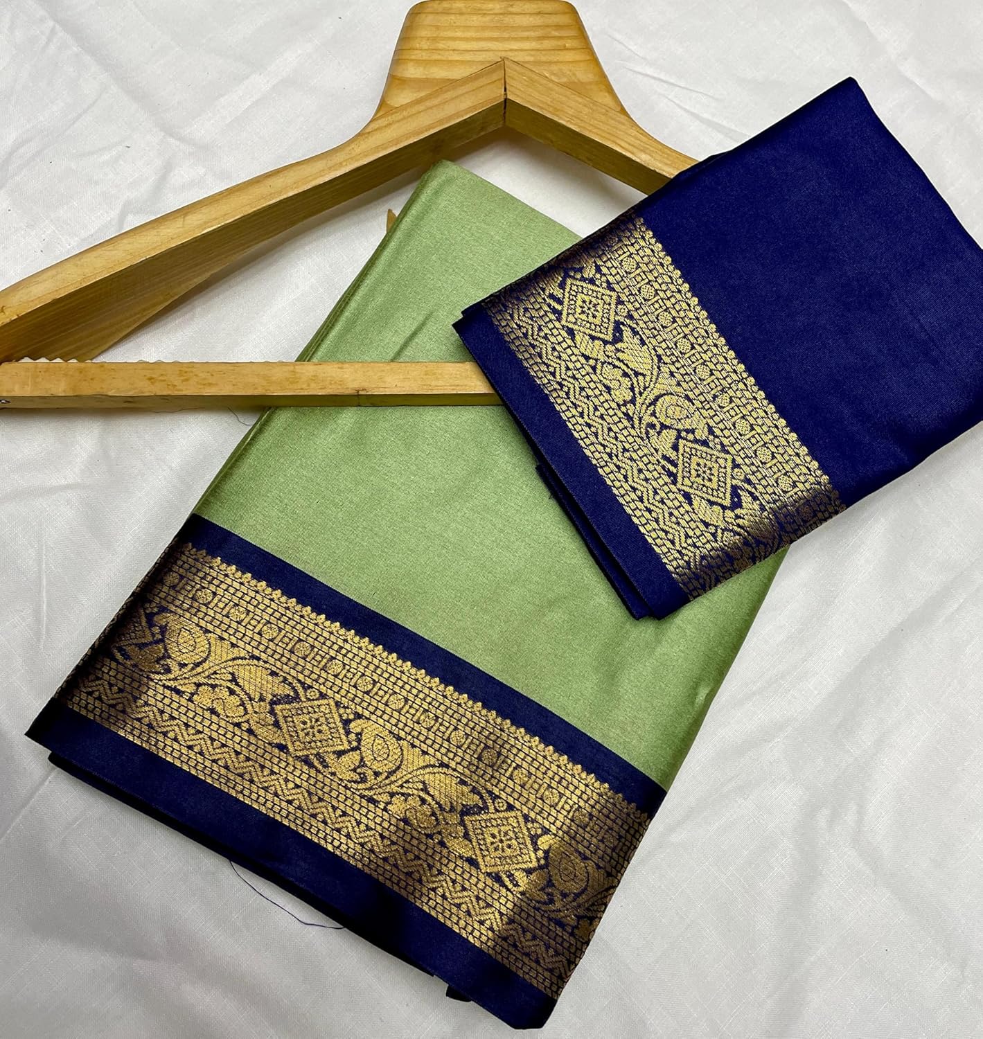 Traditional Handloom Silk Saree with Gold Zari Border, Lime Green and Dark Green, Ethnic Wedding Collection