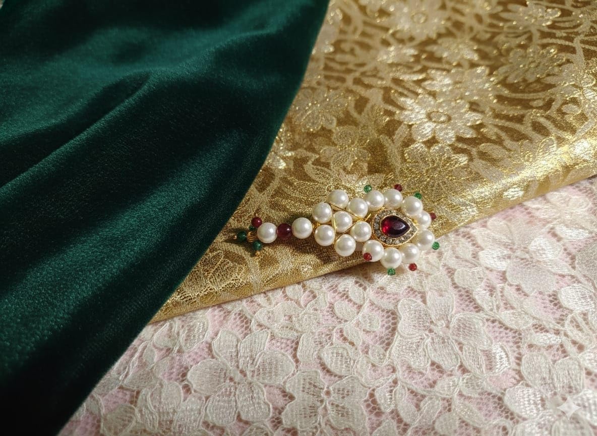 ELEGANT DESIGN: Traditional Indian hair accessory featuring pearl embellishments, gold-toned metalwork, and colourful accent stones for a luxurious look