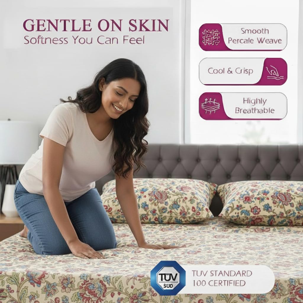 3. Thread Count Perfection: With a thread count of 144 TC, this bedsheet boasts a fine weave that enhances its durability and provides a smooth, high-quality texture. The higher thread count contributes to a luxurious feel and adds to the overall comfort.