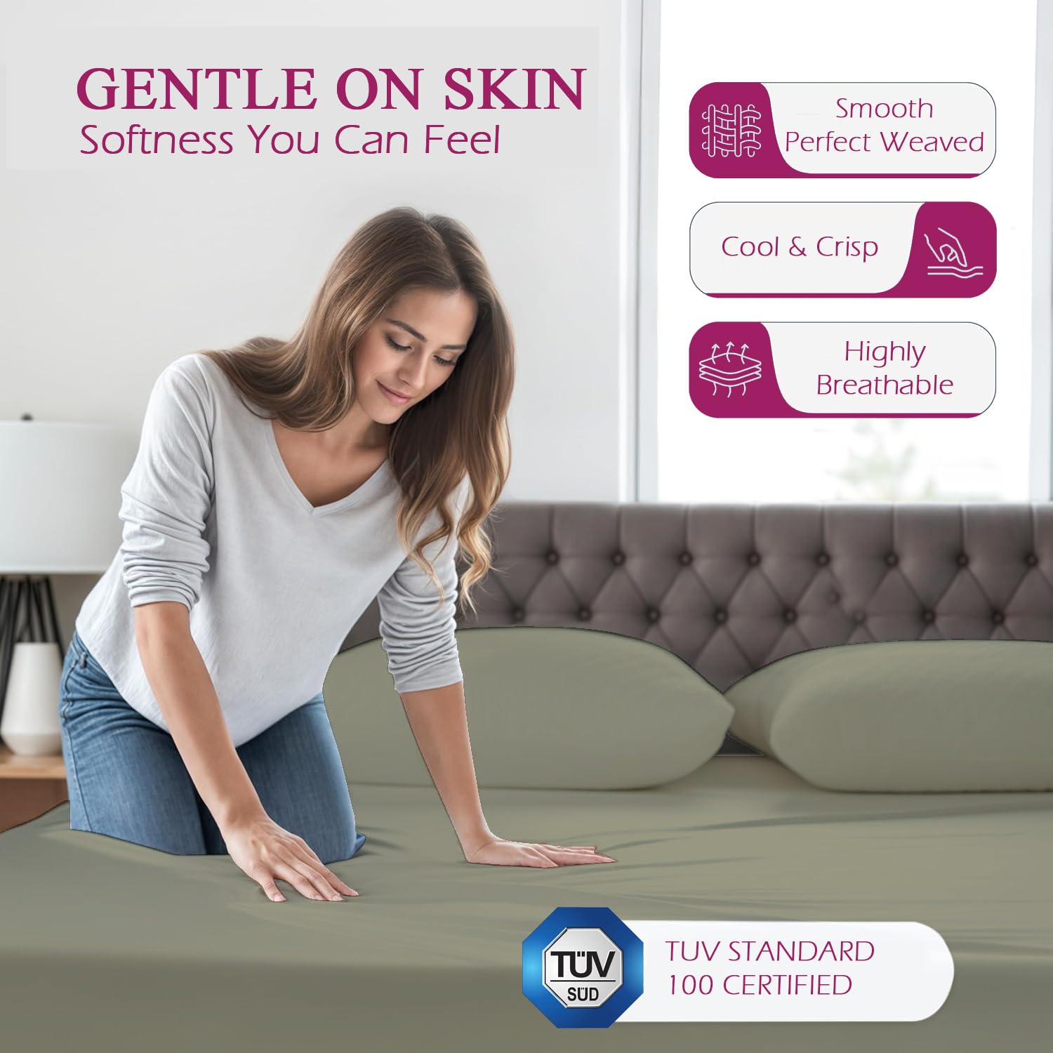 Premium Quality Material: Made from ultra-soft bamboo fibre with fine 60’s yarn and 300 thread count for a smooth, breathable, and luxurious feel—perfect for a restful night’s sleep.