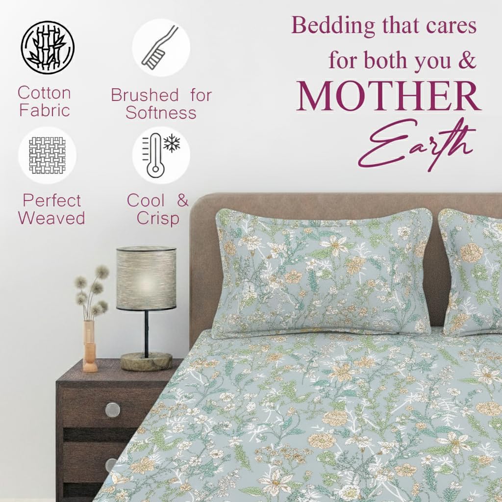 Trance Home Linen Premium Skin Friendly 100% Cotton Printed Flat Bedsheet for King Size Bed with 2 Pillow Cover – 180TC (108 x 108 Inches, Wild Flowers)