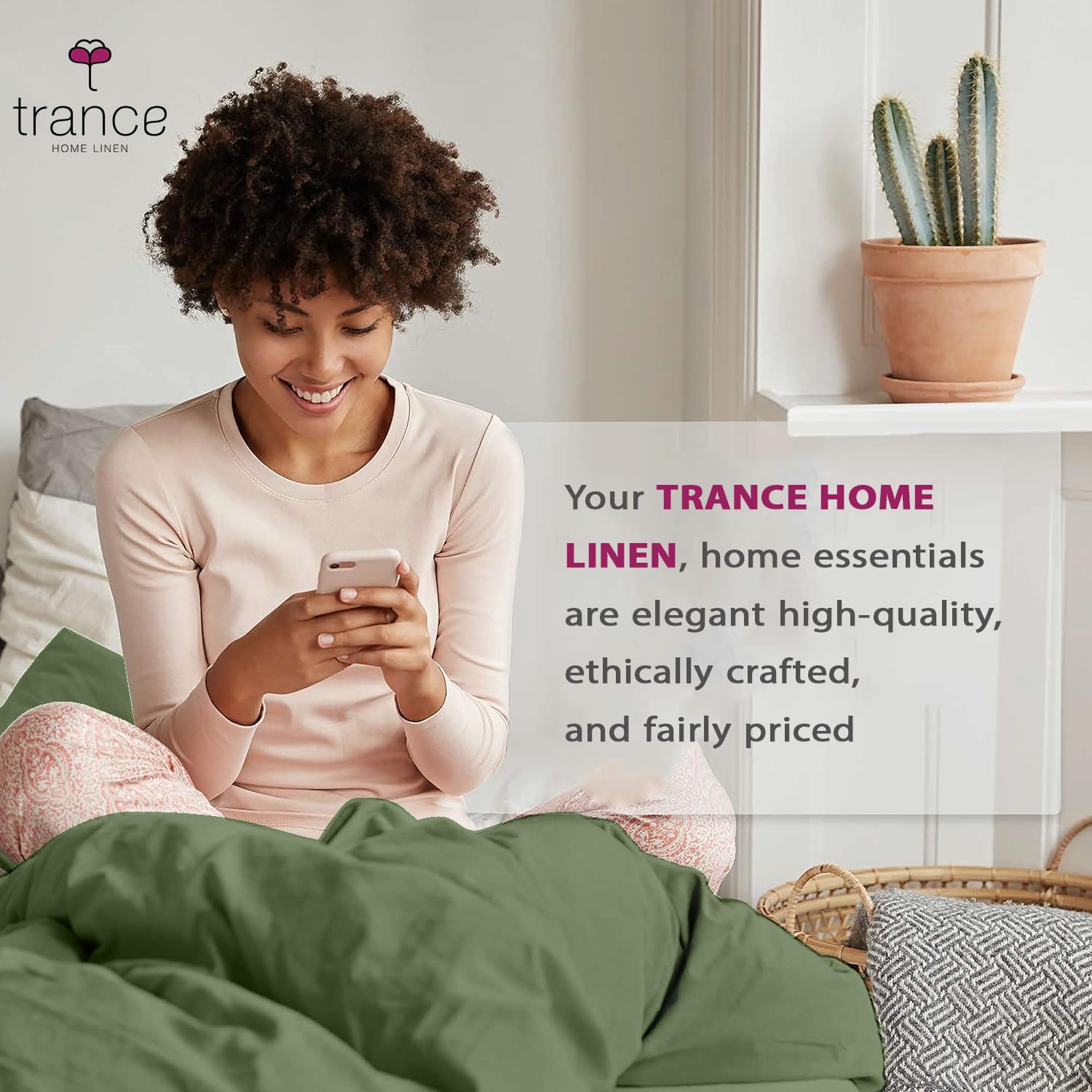 Trance Home Linen Pure 100% Cotton 400TC Plain King Size Bedsheet with 2 Pillow Covers (108 x 108 Inch | 9ft x 9ft, Green)