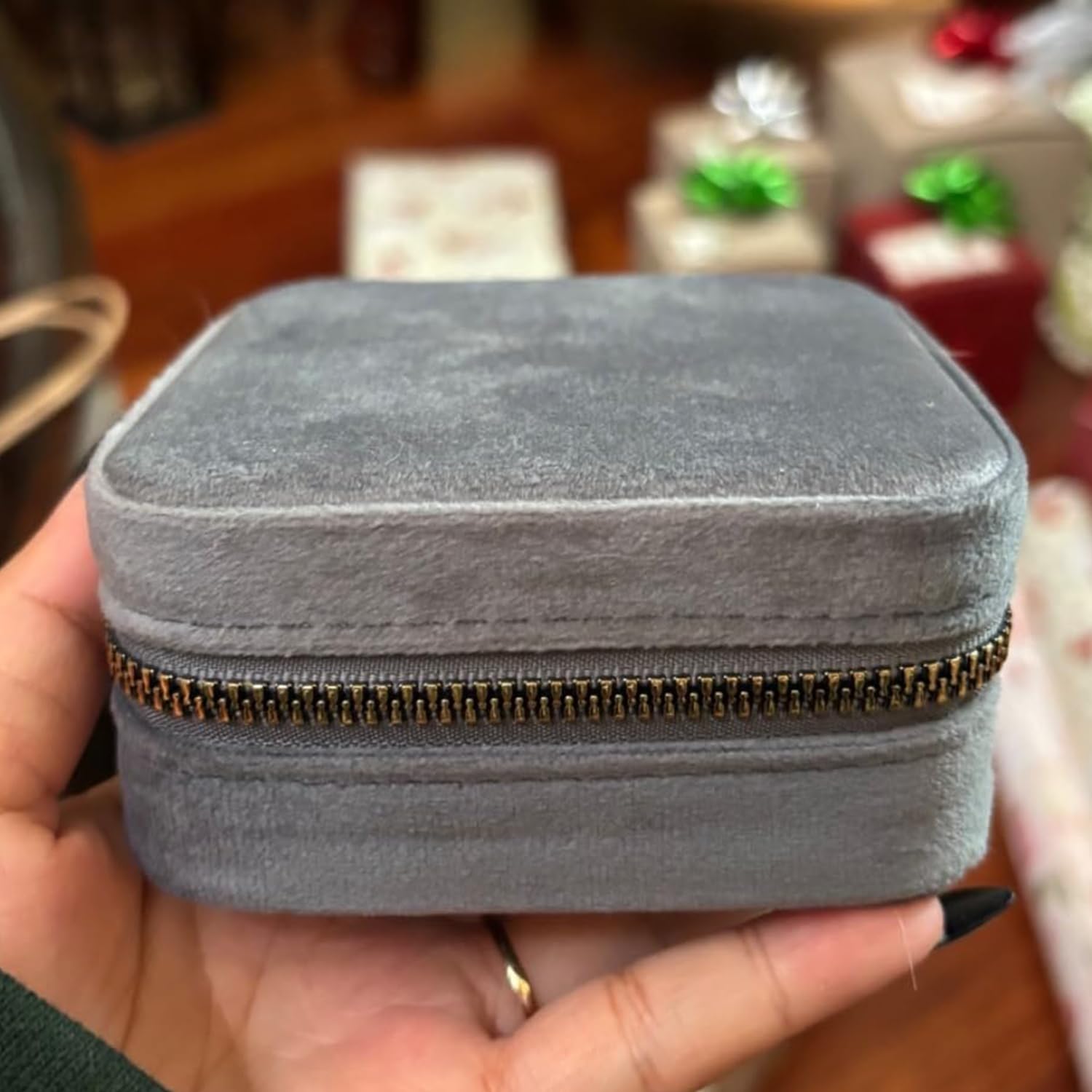 Travel Jewelry Case Small Jewelry Box Ring Earrings Necklace Organizer Velvet Jewelry Storage Case for Girls Women (Grey)