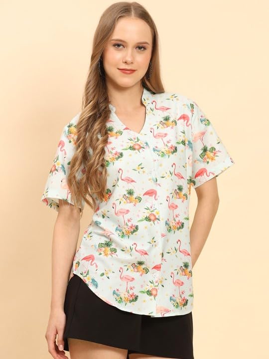 Trendy Queen Printed Straight Mandarin Neck Shirt for Women’s | Tops for Woman Shirts | Shirt for Women Stylish Western (SD780_S)