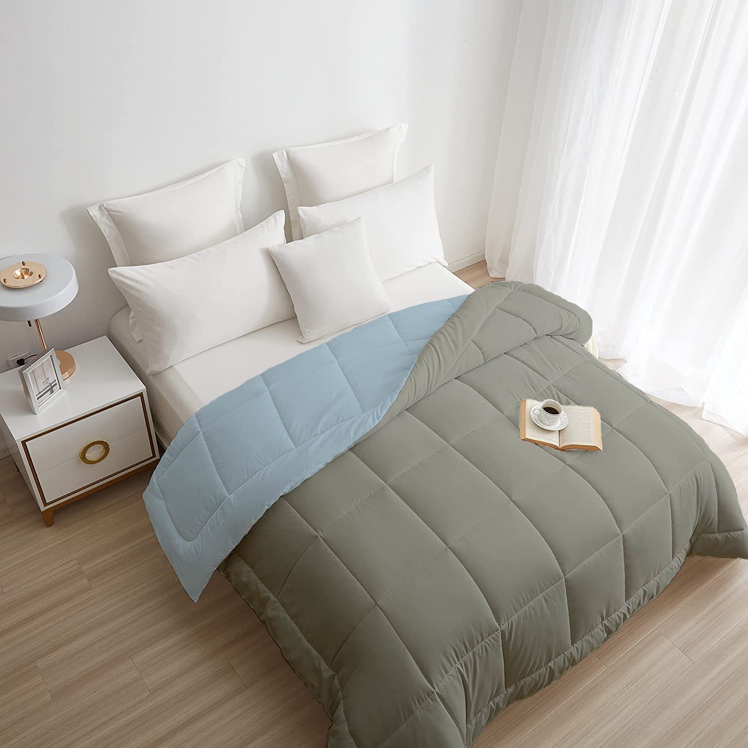 TRIDENT Comfort Living Microfiber Reversible AC Comforter, 120 GSM, Soft & Cozy, Lightweight Quilt, All Season use, Machine Washable, Queen/Double Size – 90×100 inches (Blue Fog)