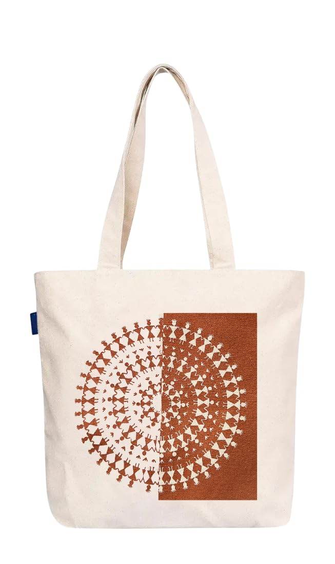 Add a touch of tradition to your everyday look with this beautifully crafted Canvas Tote Bag featuring authentic Warli Art. Designed to blend modern functionality with classic ethnic charm, this stylish and spacious tote is perfect for work, travel, or daily use. Made from premium quality, eco-friendly canvas, the bag is durable and built for long-lasting use. It showcases intricate tribal patterns inspired by the indigenous Warli art form of Maharashtra, adding cultural appeal and making it a true conversation starter. The secure zip closure keeps your belongings safe during commutes or outings, while the roomy interior easily accommodates books, groceries, lunch, travel essentials, or even work supplies. Soft yet sturdy shoulder straps ensure comfortable carrying, even with a full load. Versatile in its use, this bag serves as a daily handbag, office tote, shopping or grocery bag, college companion, or even a picnic or travel partner. It also makes for a thoughtful, eco-conscious gift. Choose sustainability without compromising on style—carry tradition with a modern twist wherever you go with this Warli Art Canvas Tote Bag.