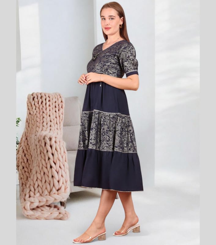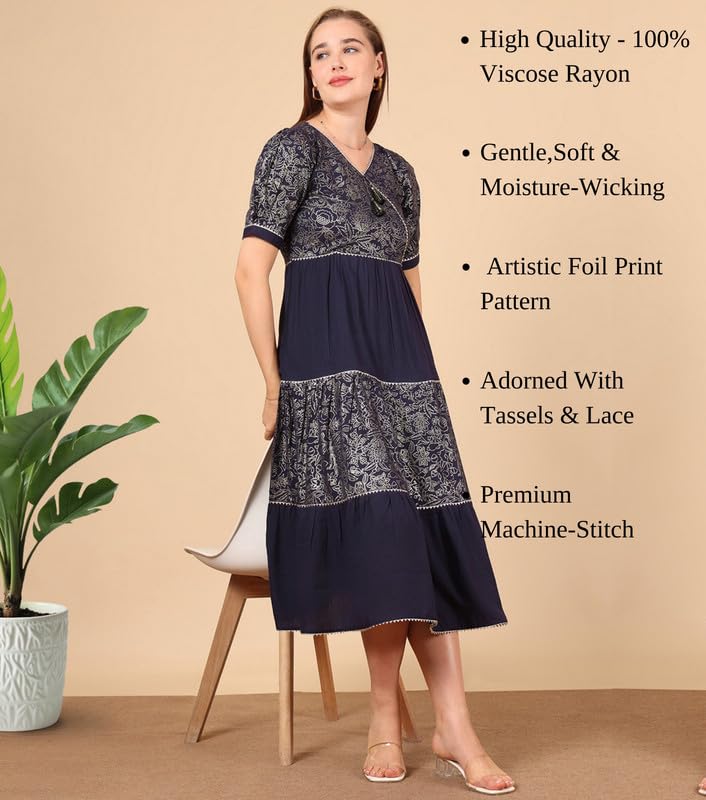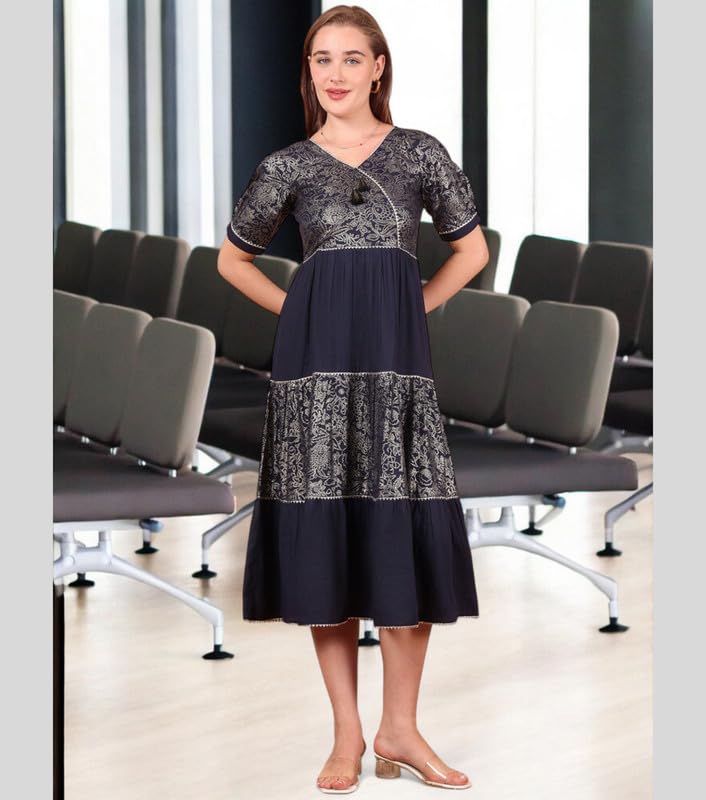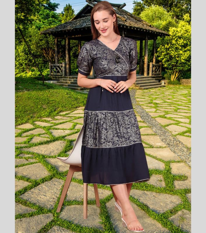 True Shape Women Dress Western | Stylish Foil Print One Piece Midi Flare for Casual, Party Cotton Kurti for Woman | Dresses for Women