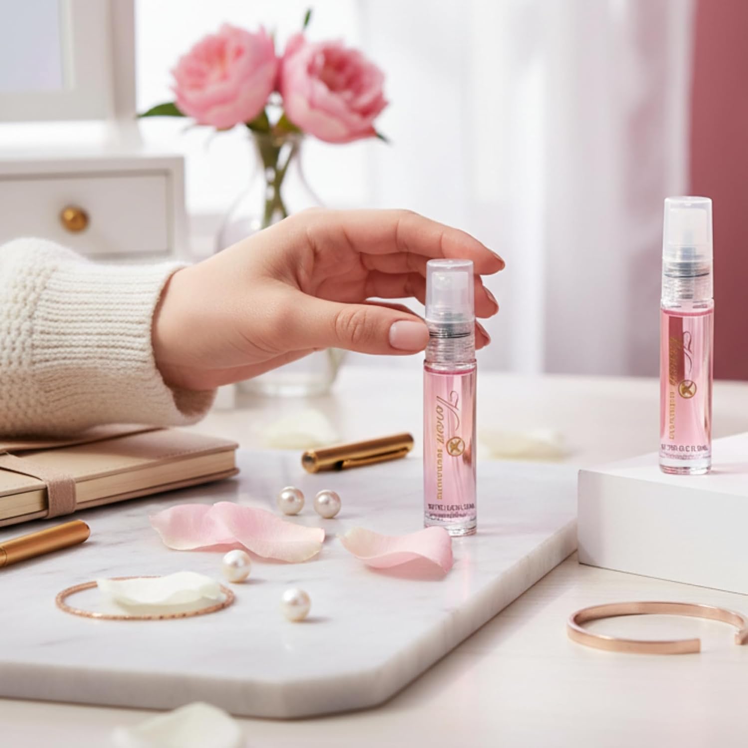 💑 Unisex Pheromone Perfume – Works with both male and female pheromones to naturally increase attraction and social connection. 🌸 For Women – Light floral and sweet notes enhance femininity and subtly attract masculine attention. 💪 For Men – Crisp, clean, and fresh scent boosts masculine appeal, confidence, and charm. 🌿 Unique & Adaptive Scent – Adjusts to your skin chemistry for a personalized, one-of-a-kind fragrance. 🧴 Travel-Size 10ml Bottle – Sleek, portable design fits in your pocket, purse, or travel kit. 💎 Elegant & Premium Design – Stylish glass bottle with gold-accented label makes it a perfect gift. ⏳ Long-Lasting Formula – Just a few sprays last all day or night.