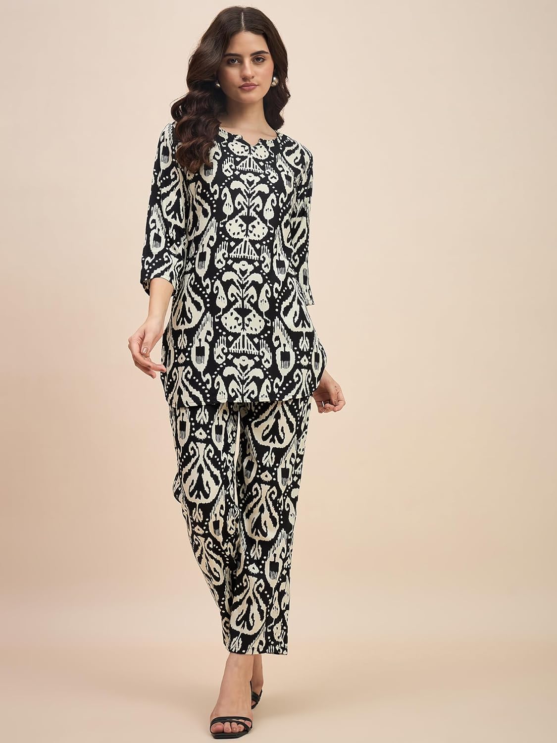 Truvon Fashions brings you this exquisite women’s co-ord set, perfect for any occasion. The kurta set with pant is crafted from high-quality fabric, ensuring comfort and style. The kurta features intricate embroidery and beautiful patterns, adding a touch of elegance to your ensemble. The matching pants provide a sleek and flattering fit, allowing you to move with ease. This co-ord set is versatile and can be dressed up or down, making it a must-have in your wardrobe. Whether you’re attending a family function, a festive celebration, or a casual outing, this kurta set with pant will make you feel confident and stylish. Truvon Fashions takes pride in their attention to detail and commitment to quality, ensuring that this co-ord set will become a cherished addition to your collection. Embrace the timeless beauty of Indian fashion with this stunning kurta set with pant.