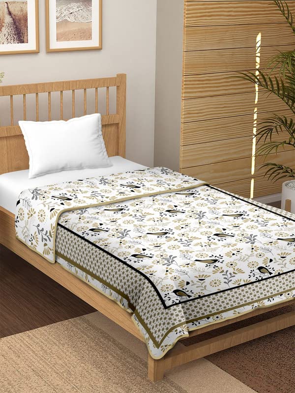 TUNDWAL’S Floral Flower Birds Leaf Printed Cotton Reversible Dohar|AC Blanket|for Single Bed || Size 60×90 INCH – 1 Piece (Multicolor) AM_DHR13