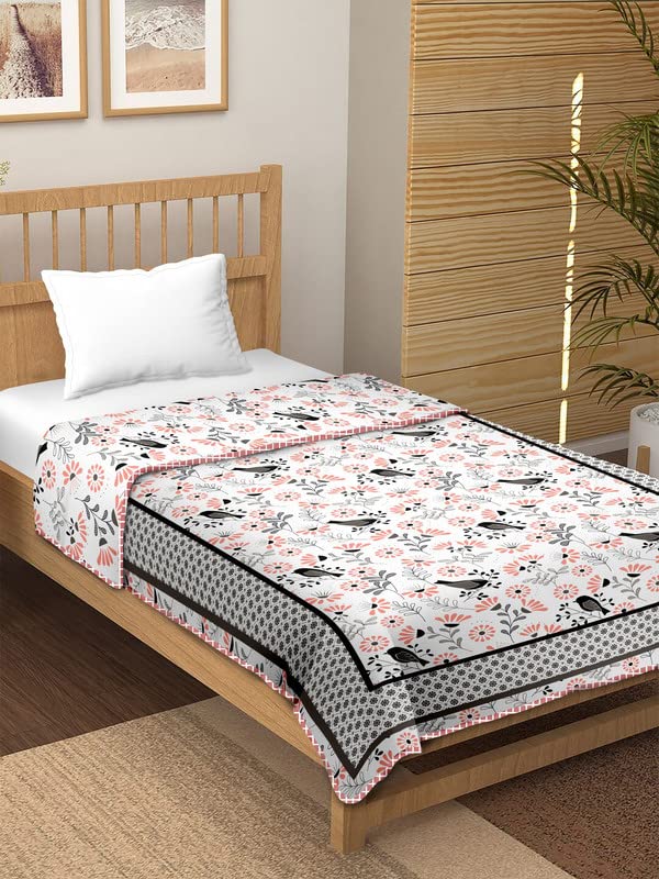 TUNDWAL’S Floral Flower Birds Leaf Printed Cotton Reversible Dohar|AC Blanket|for Single Bed || Size 60×90 INCH – 1 Piece (Multicolor) AM_DHR15
