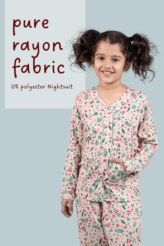 Care Instructions: Hand Wash Only Beautiful design comfort Pure Rayon printed nightwear suit for Girl. Graphic print Purpose: Night Dress, Night Suit, Girls Clothing, Sleepwear, Pyjama. Full sleeved shirt with button closure and full slip-on pyjama, styled with collar and contrast lining.