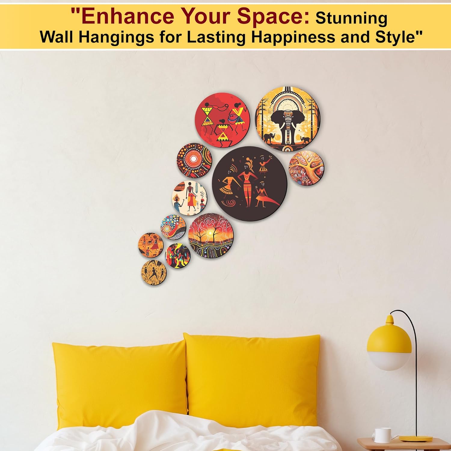Twinster Wooden Wall Hanging for Home Decor, Living Room, Bedroom, Office, Motivational Art Patterns, Wall Decor, Pack of 11 (Rajasthani)