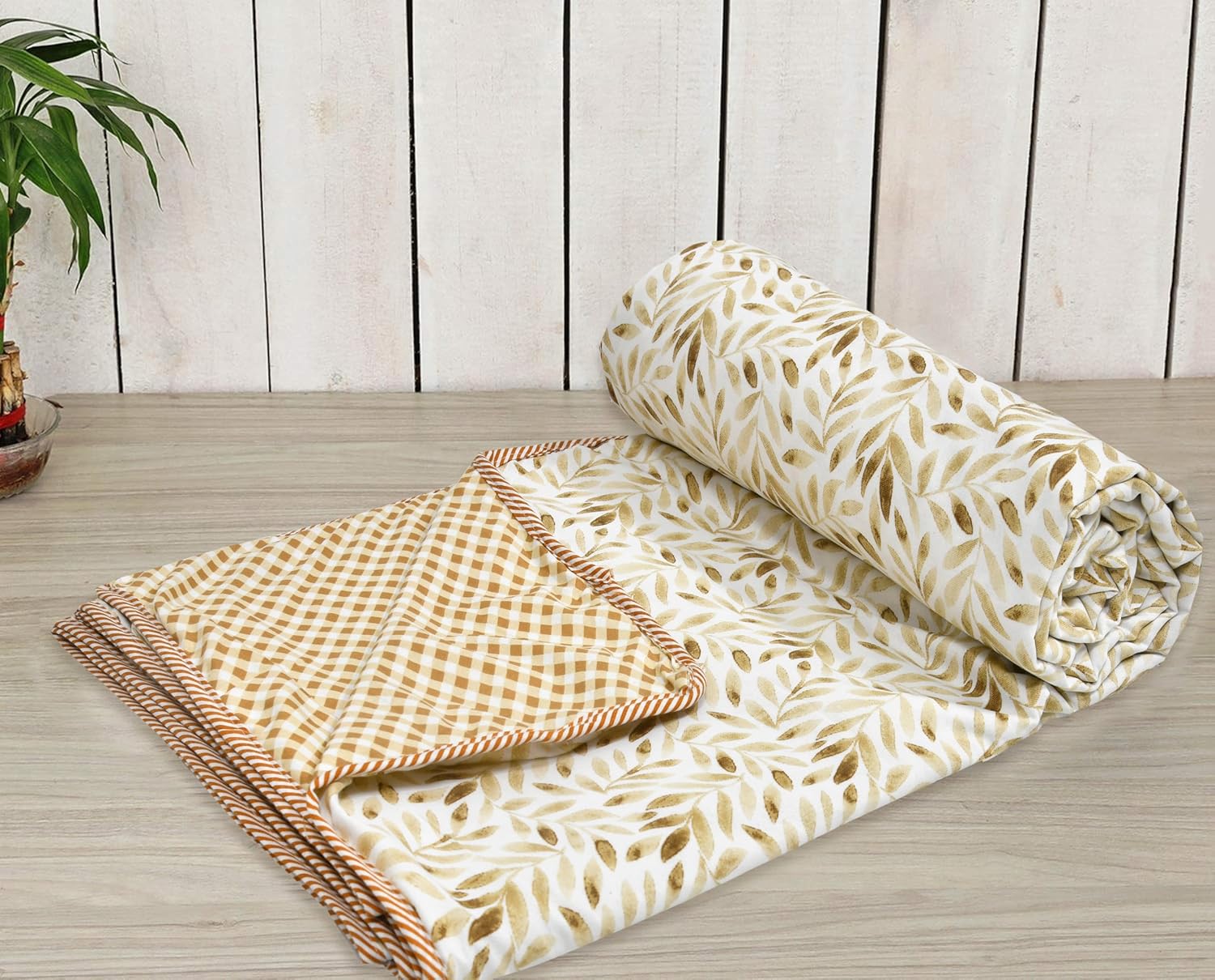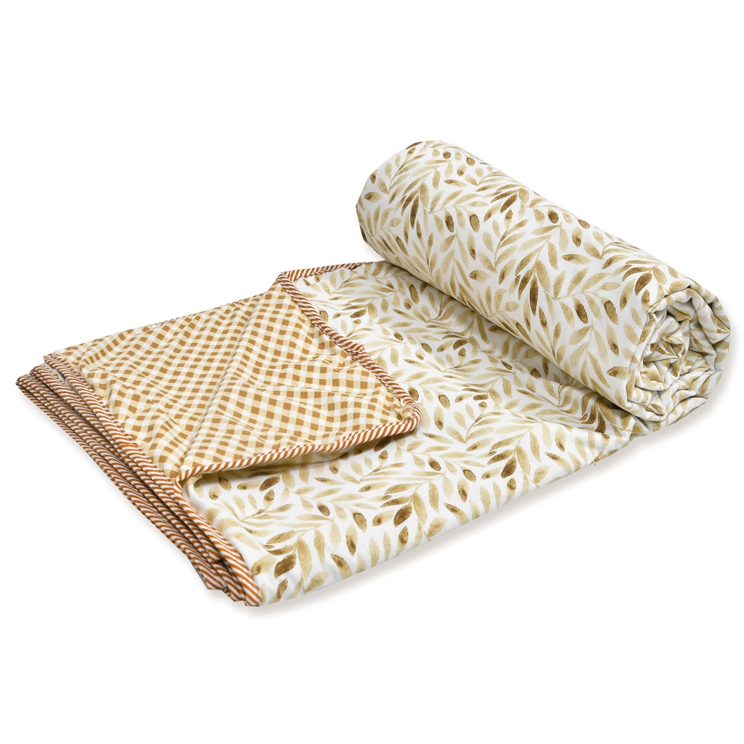 Tzafrir Cotton Dohar Single Bed Reversible | Soft Cambric Weave, All Weather Light AC Blanket | Duvet, 56 x 89 inches, Brown Leaf