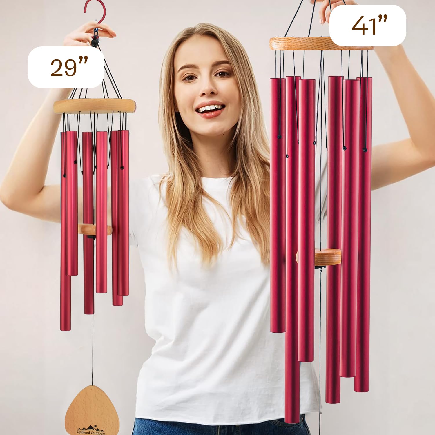 UpBlend XL Wind Chimes for Outside Gift – Deep Tone Wind Chime with Decorative Stone – Garden and Patio Décor for Porch or Yard, Elegant Outdoor Ornament, Meaningful Gift for Neighbors. 41” Red.